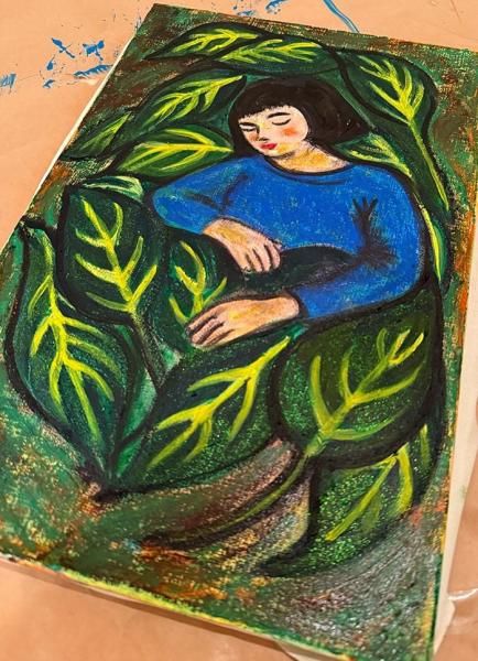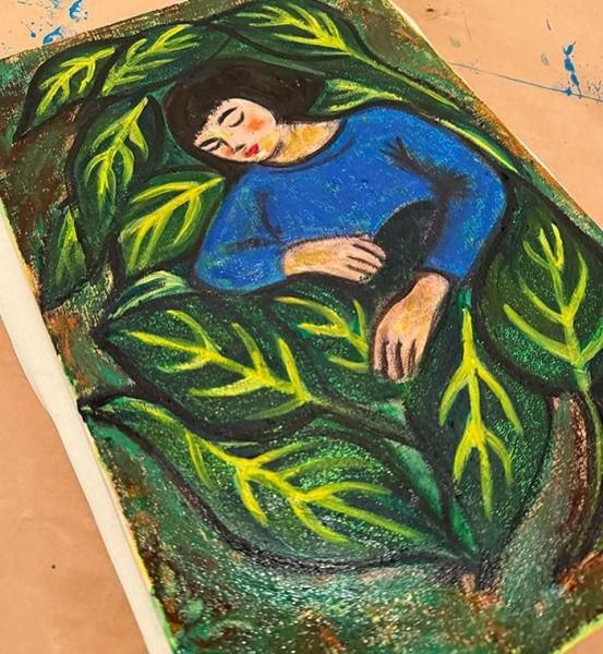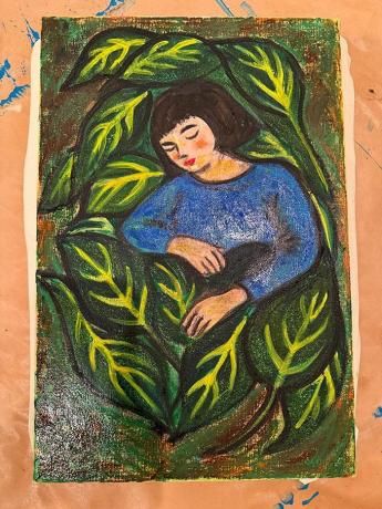 この作品に描かれた少女は、葉の記憶に抱かれながら眠り、