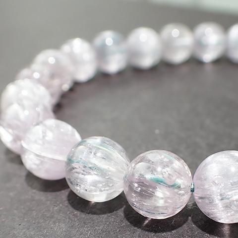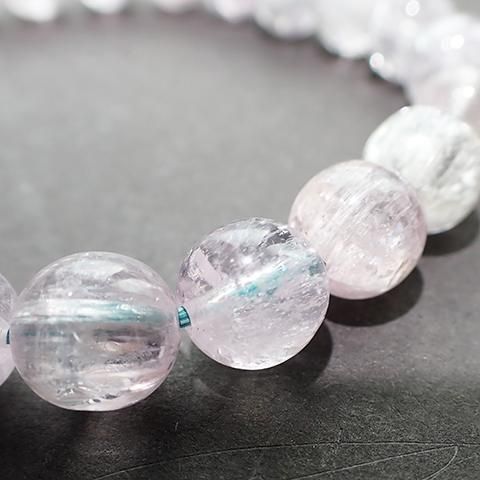 クンツァイトは「スポジュメン」という鉱物の一種で、パステルピンク、ライラック、ラベンダー色など、ほんのりと紫色を感じる上品なピンク色をみせる色合いの石をクンツァイトと呼びます。
