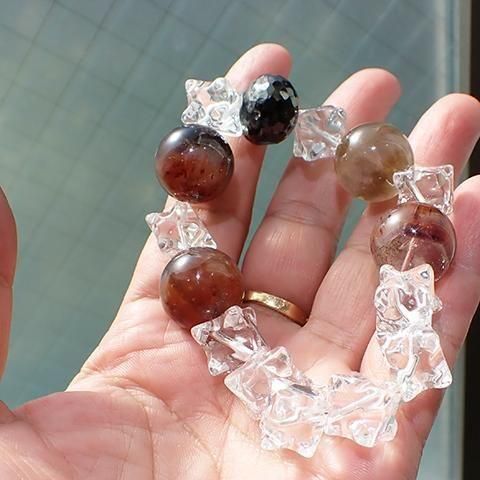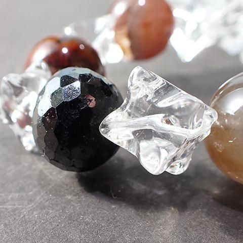 【黒いおまんじゅうのようなブラックダイヤ × ドリームコートレムリアン × マルカバスター水晶】